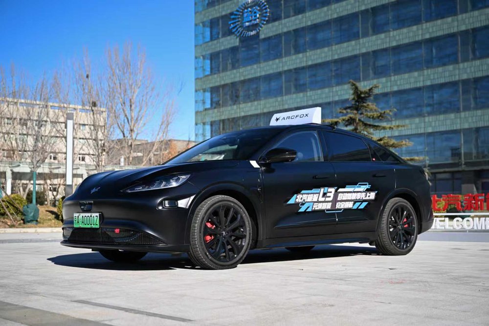 (12月23日,北汽新能源旗下极狐阿尔法S(L3版)获得中国首批L3级自动驾驶专用正式号牌“京AA0001Z”,图片源自北汽)