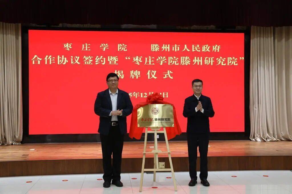 仪式上,丛海林与刘晓璐共同为枣庄学院滕州研究院揭牌。李目海与刘琳代表双方签订合作协议。
